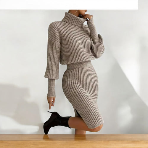 Ribbed Sweater Dress with Cinched Waist