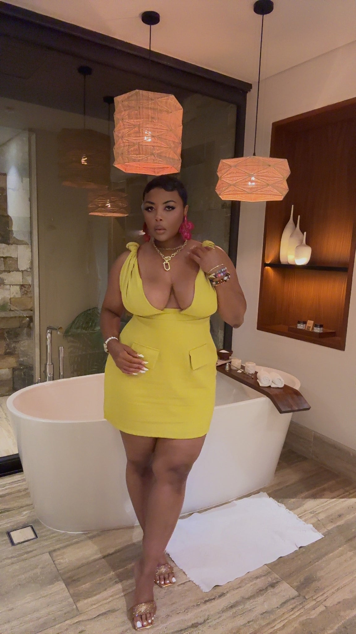 Step into your goddess era with La Diosa del Sol, a radiant yellow mini that captures the golden heat of Cabo. Designed with a plunging neckline and cinched waist, this 5-star resort–ready piece was made for baddie nights and luxury escapes. Whether you’re sipping cocktails by the pool or glowing under soft candlelight, this dress turns every room into your runway.