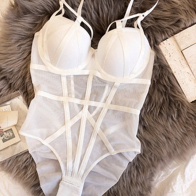 The Love Spell Teddy Set is a sensual one piece bodysuit with a high waist and thong panty. Included: a padded cup with underwire for extra support with a naturally smooth feel.