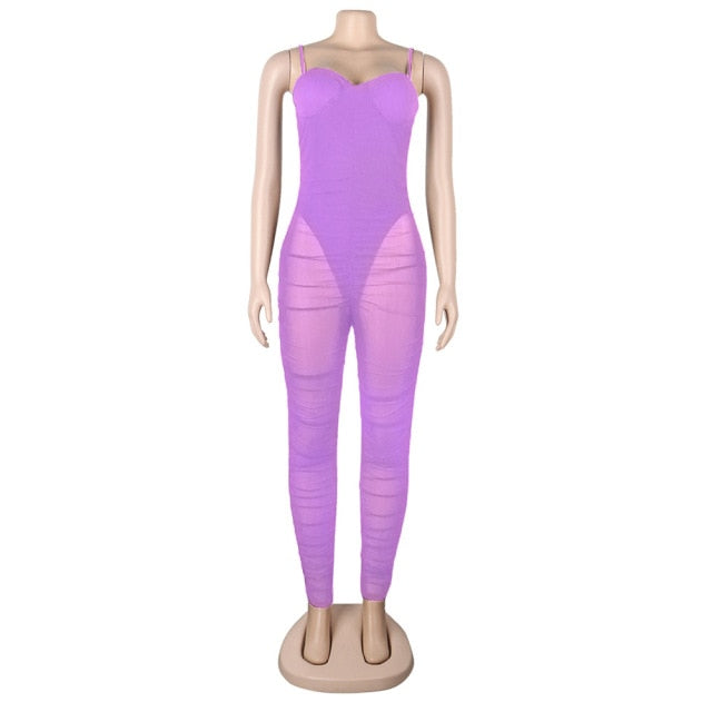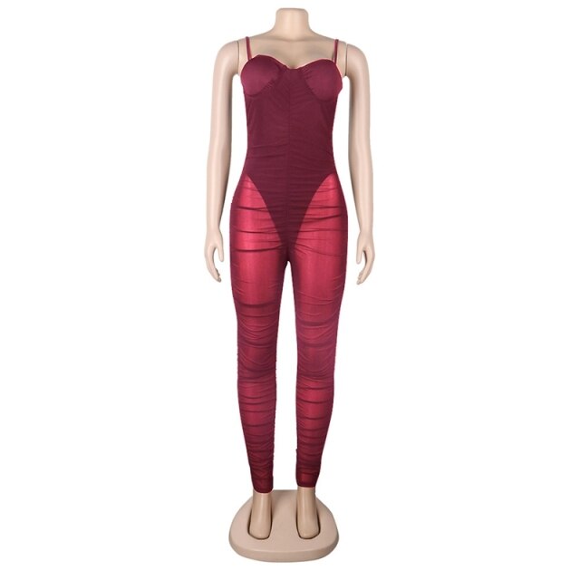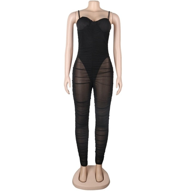 Ruched mesh fabric leggings and polyester corset with spaghetti straps.