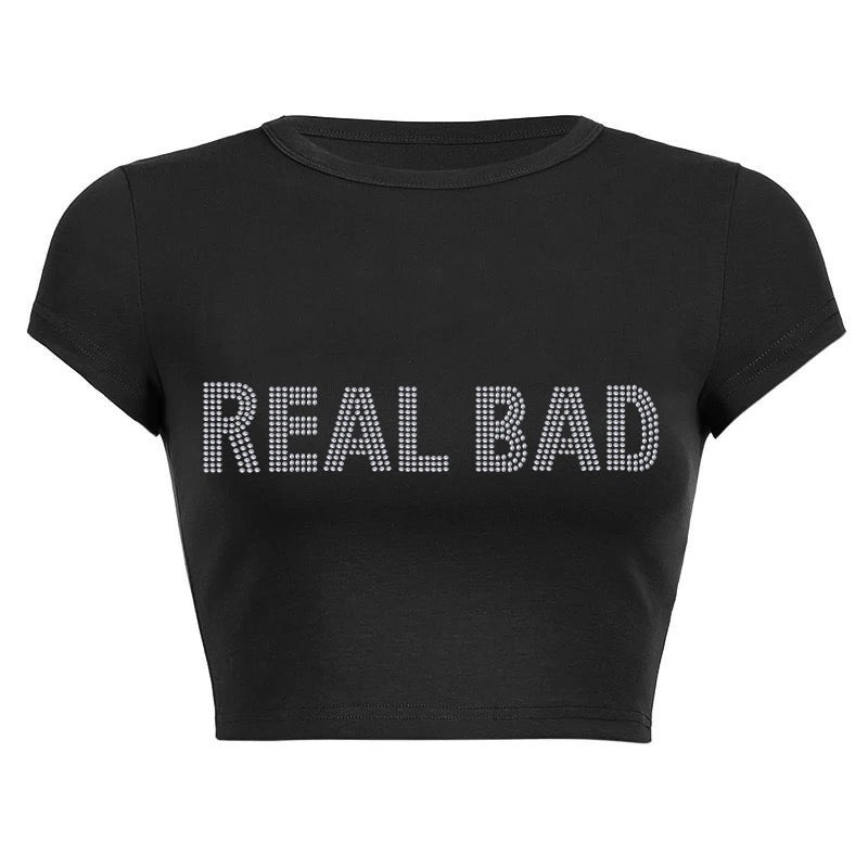Unleash your inner baddie with our "Real Bad" White Cropped Tee. This statement piece combines a classic fit with a daring edge, featuring bold rhinestone lettering that exudes confidence and attitude. Crafted from high-quality, breathable cotton, it offers both comfort and style. Perfect for pairing with high-waisted jeans or your favorite skirt, this tee is a must-have for those who aren’t afraid to stand out. Make a bold statement and show the world you mean business with the "Real Bad" White Cropped Tee.