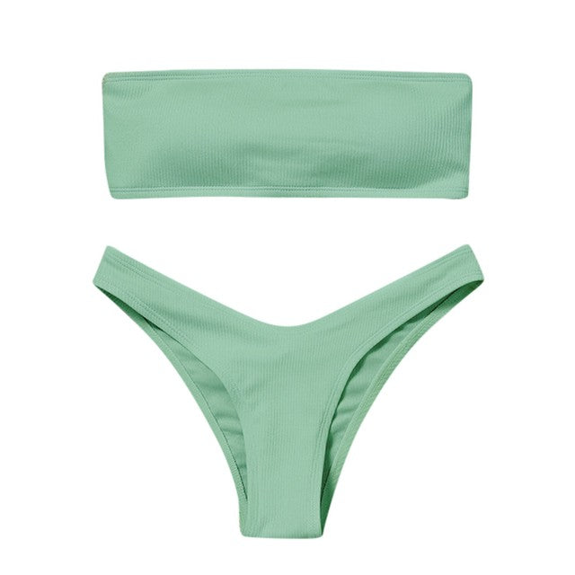 You’ll love this exotic high waist bikini with firm top. Soft and supportive feel with straps in the back and on along the hips of the bikini bottom. Style is wire free, and true you size. No padding.
