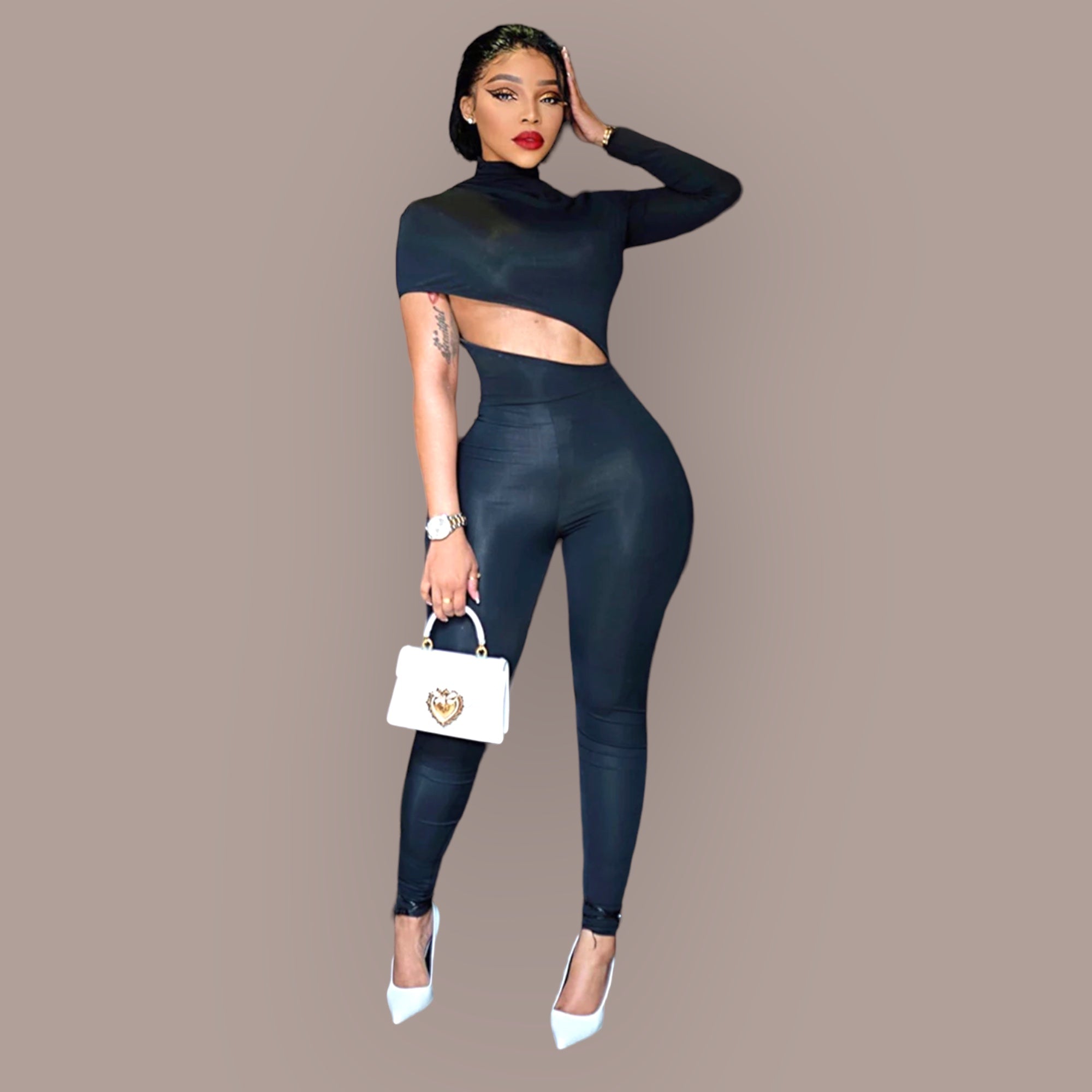 Edgy long sleeve asymmetrical top with slit under chest. Zipper closure. Quality stretch material. Imported.