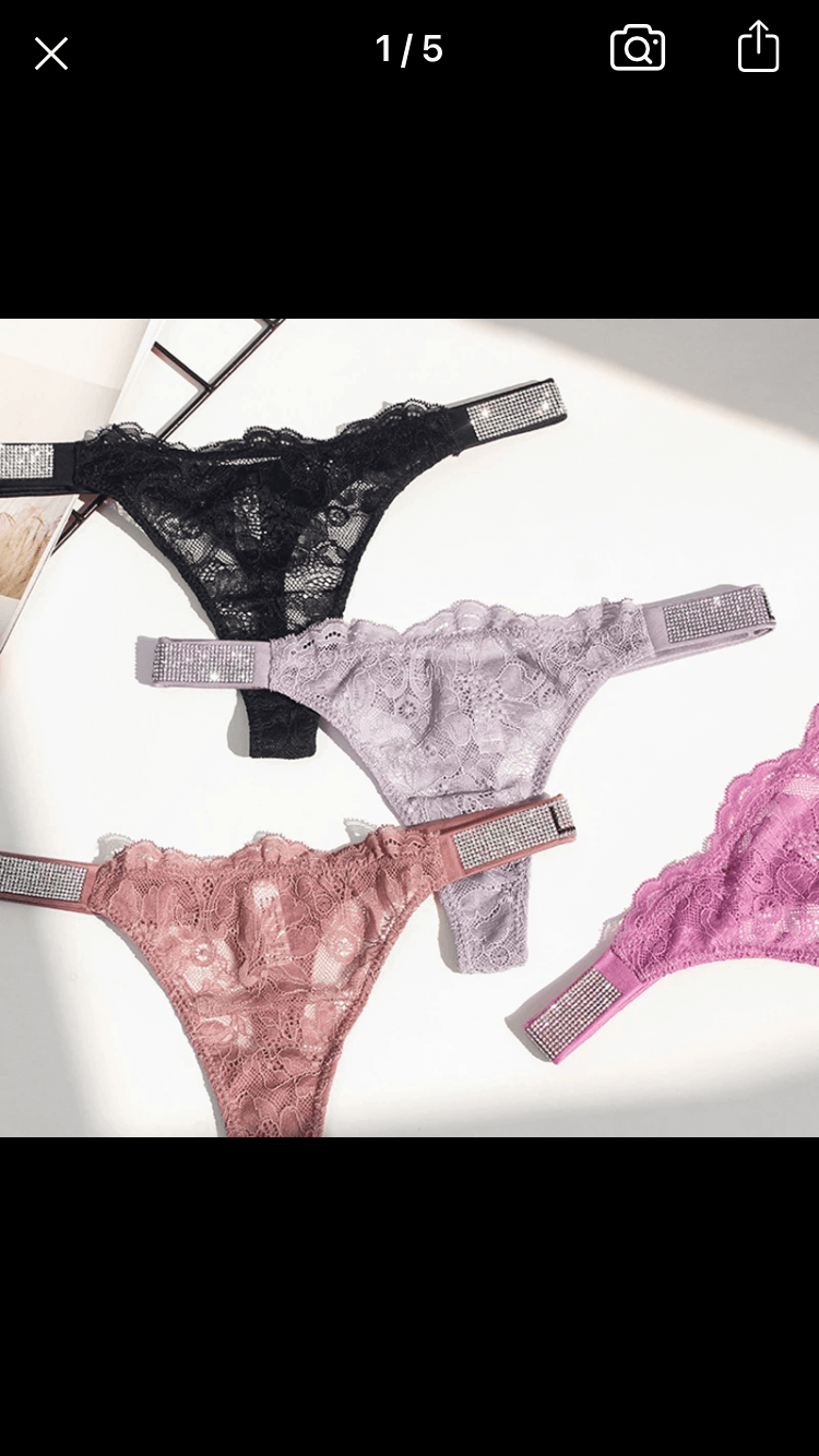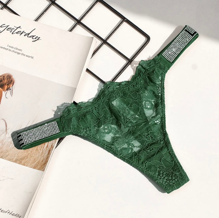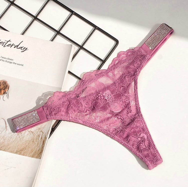 Lace thong with diamond studded sides